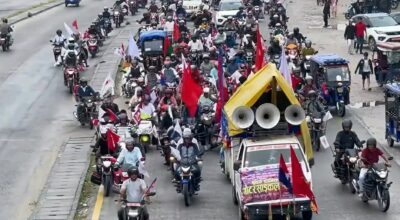 दमक । एमालेको जनसंगठनहरुको सहभागितामा नेकपा एमालेले आज झापाको दमकमा मोटरसाइकल रयाली आयोजना गरेको छ । एमाले दमक नगर कमिटीले