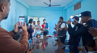 काठमाडौं। ईलाका प्रहरी कार्यालय दमकका नयाँ प्रमुख डीएसपी किसोर लम्सालाई ध्रुवतारा स्पोर्टिङ क्लबले स्वागत गरेको छ। क्लबका अध्यक्ष मोहन मगरले कात्तिक २४ गते इलाका प्रहरी कार्यालय दमकमा एक विशेष कार्यक्रममा लम्सालाई स्वागत गरेका हुन्। यस अवसरमा, क्लबका सदस्यहरूले आफ्नो सम्मान व्यक्त गर्दै, नयाँ कार्यभार सम्हाल्नुभएको लम्सालाई शुभकामना दिएका थिए। यसअघि, इलाका प्रहरी कार्यालय दमकका डीएसपी […]