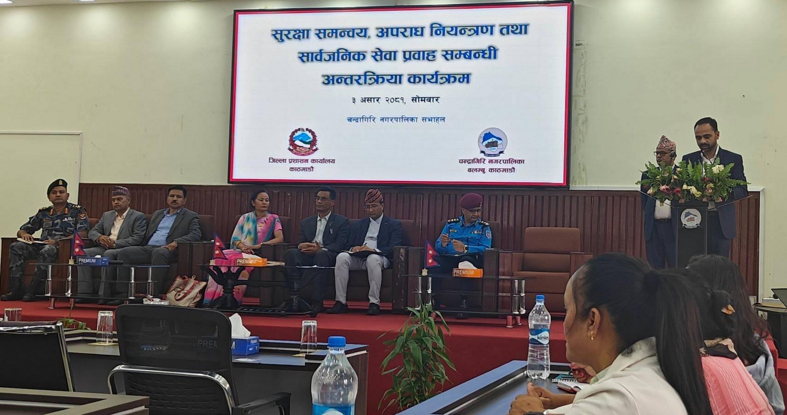 कार्यक्रममा चन्द्रागिरि नगरपालिकाका प्रमुख प्रशासकीय अधिकृत हेमराज अर्यालले सार्वजनिक सेवा प्रवाहलाई अझ चुस्त बनाउन, सुरक्षा समन्वय गर्न र अपराध नियन्त्रणमा स्थानीय सरकार र स्थानीय प्रशासनबीचको सहकार्य र समन्वय अभिवृद्धि गर्न कार्यक्रम आयोजना गरिएको हो भन्नुभयो । उहाँले भन्नुभयो, उपत्यकाको प्रवेशद्वारका रूपमा रहेको चन्द्रागिरि नगरपालिका शान्ति, सुरक्षाका दृष्टिकोणले संवेदनशील रहेको छ । यस कुरालाई ख्याल गरेर नगरपालिकाले सुरक्षा निकायसँग मिलेर काम गरिराखेको छ । नगरपालिकाले प्रदान गर्ने सेवालाई क्रमशः विद्युतीय प्रविधिमा रुपान्तरण गर्ने कामको थालनी भइरहेको छ । यसले सेवाग्राहीलाई थप सहजता ल्याउने छ ।