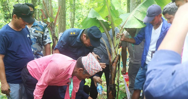 वन्यजन्तुको आहारका लागि सामुदायिक वनमा दश हजार बिरुवा रोपिए