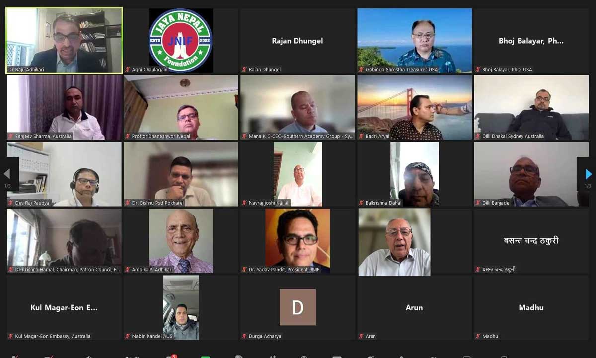 जय नेपाल इन्टरनेशनल फाउन्डेसन अष्ट्रेलिया च्याप्टरका सचिव अभिमन्यु केसीले संचालन र डा.राजु अधिकारीले सहजीकरण गरेको कार्यक्रममा अष्ट्रेलिया च्याप्टनरका अध्यक्ष डा।डिल्ली बन्जाडेले स्वागत गरेका थिए भने जय नेपाल इन्टरनेशल फाउन्डेसनका अध्यक्ष डा।यादव पण्डितले सबैलाई धन्यवाद दिए ।