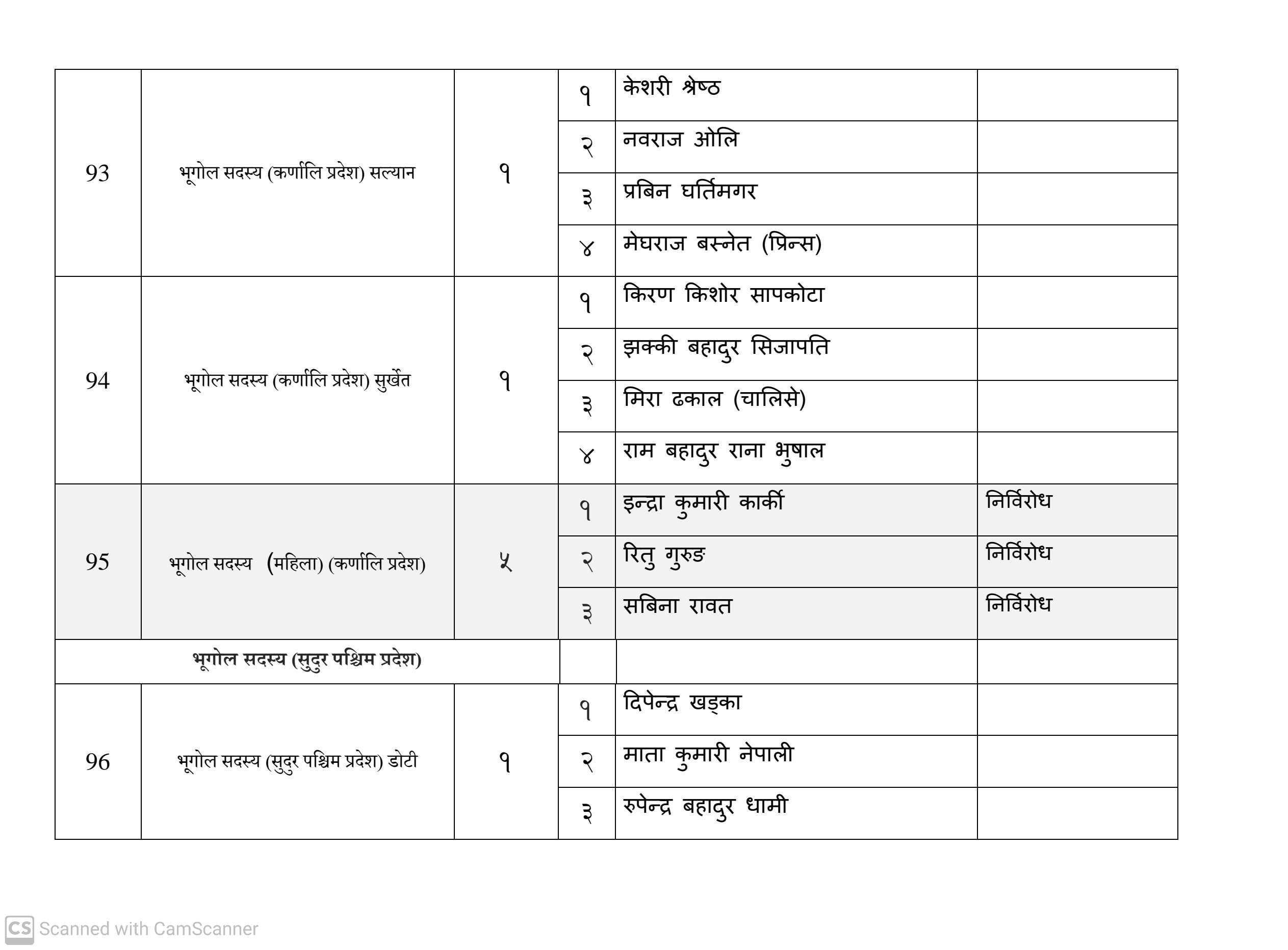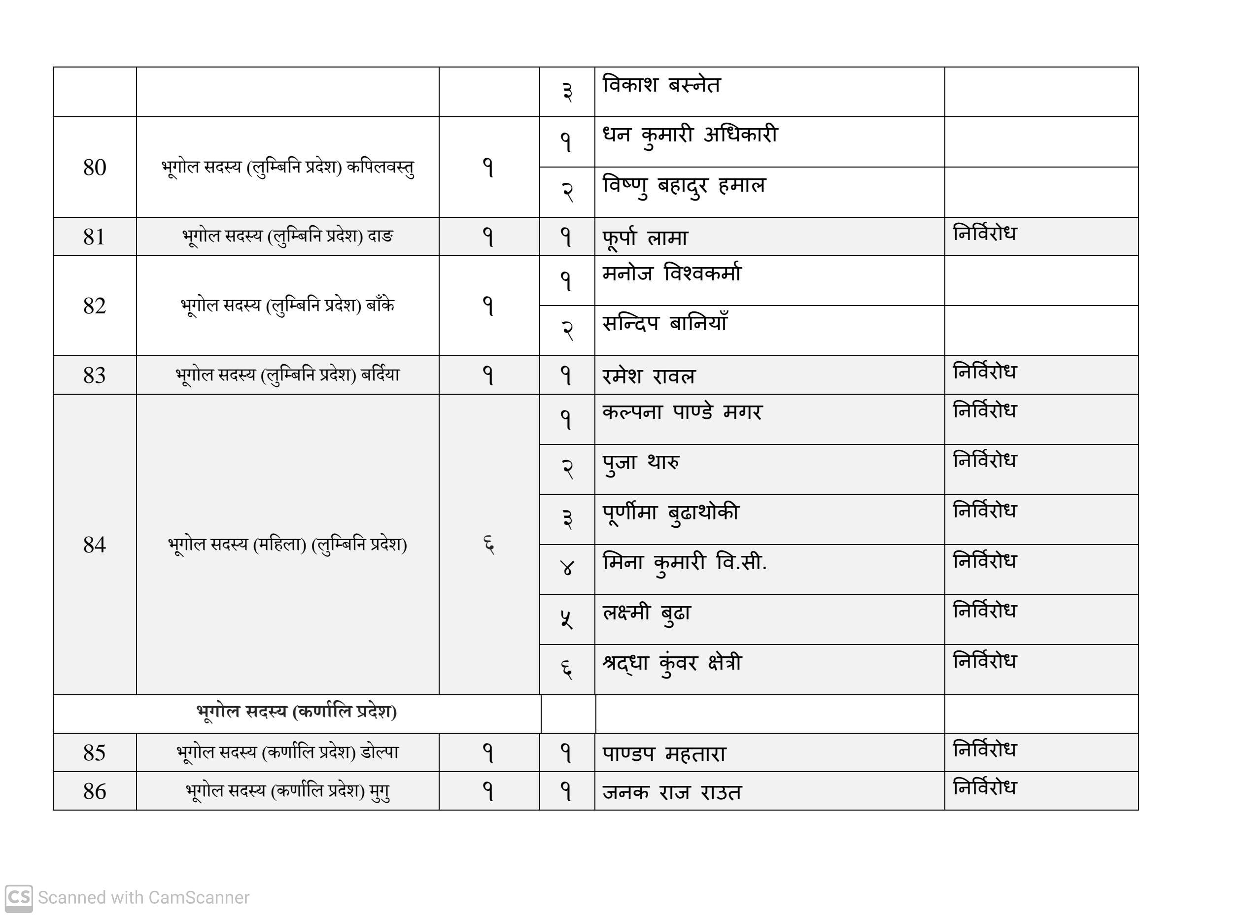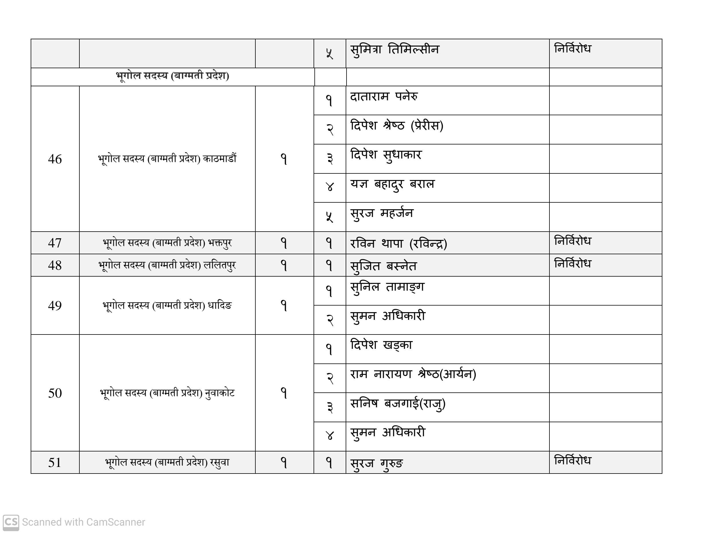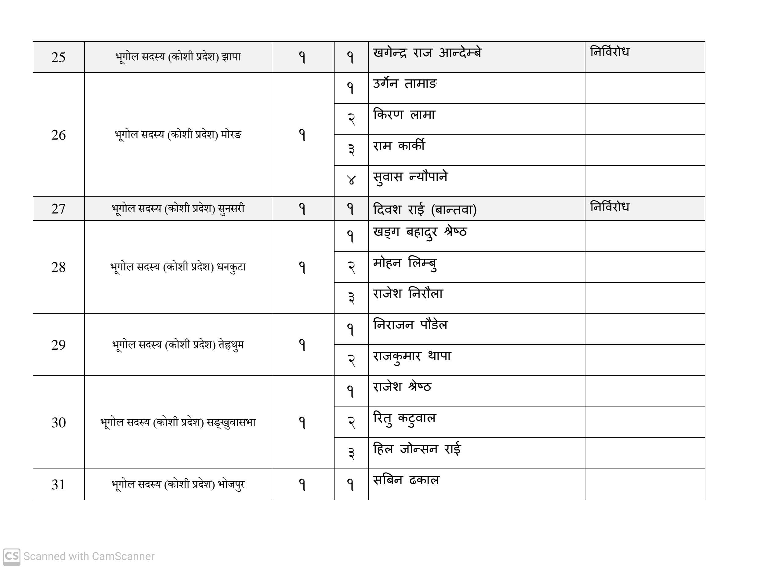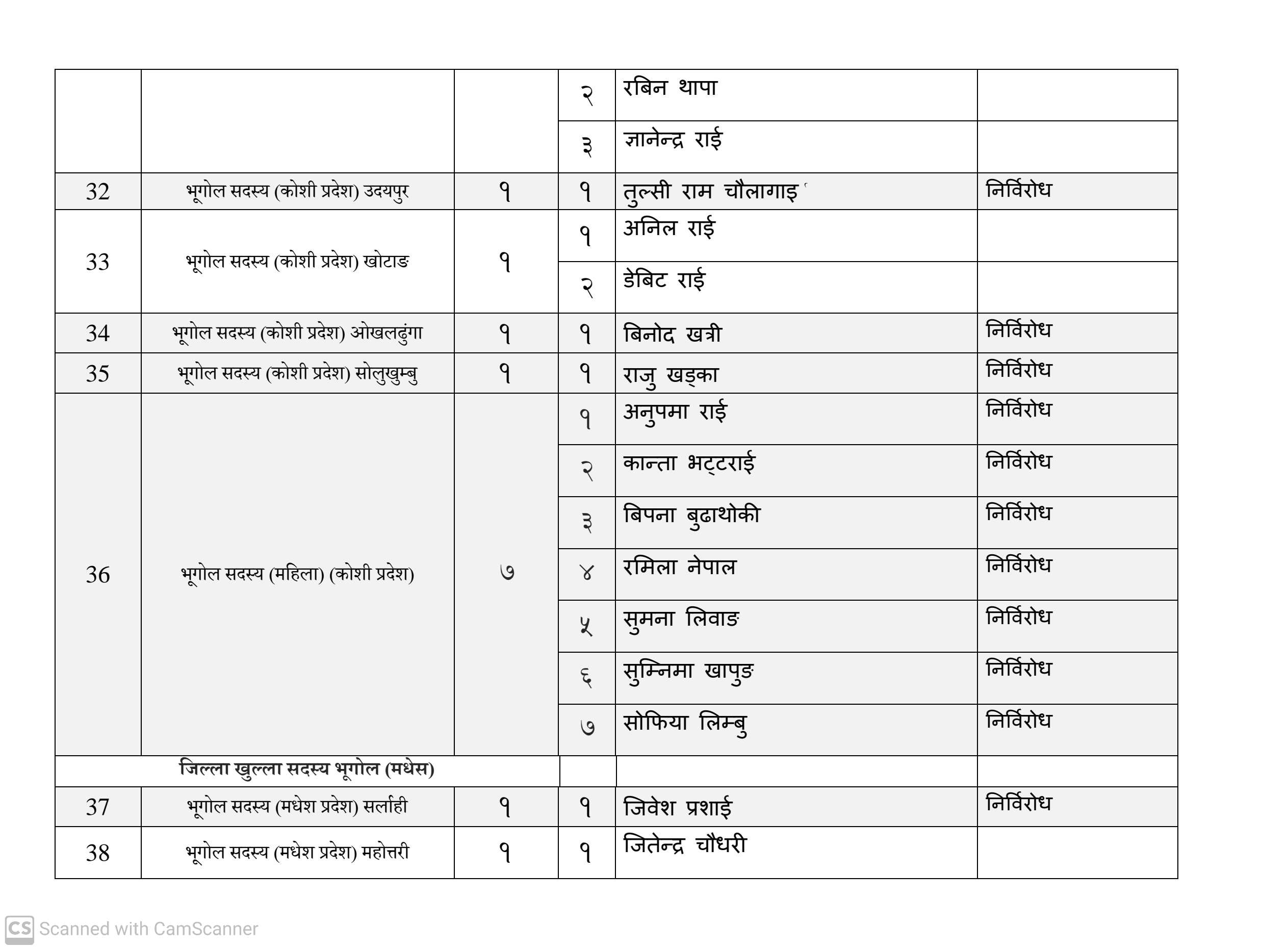 कुल १६३ जना सदस्य निर्वाचित हुनेमा हालसम्म ६४ जना सर्वसम्मत चयन भइसकेका छन्। तीमध्ये ५७ जना क्षितिज थेबे पक्षधर रहेका छन् भने सुमन पक्षधरबाट सर्वसम्मत भएका ४ जनामध्ये लुम्बिनी प्रदेशका केही प्रतिनिधि अझै तटस्थ (न्युट्रल) रहेको बताइएको छ।