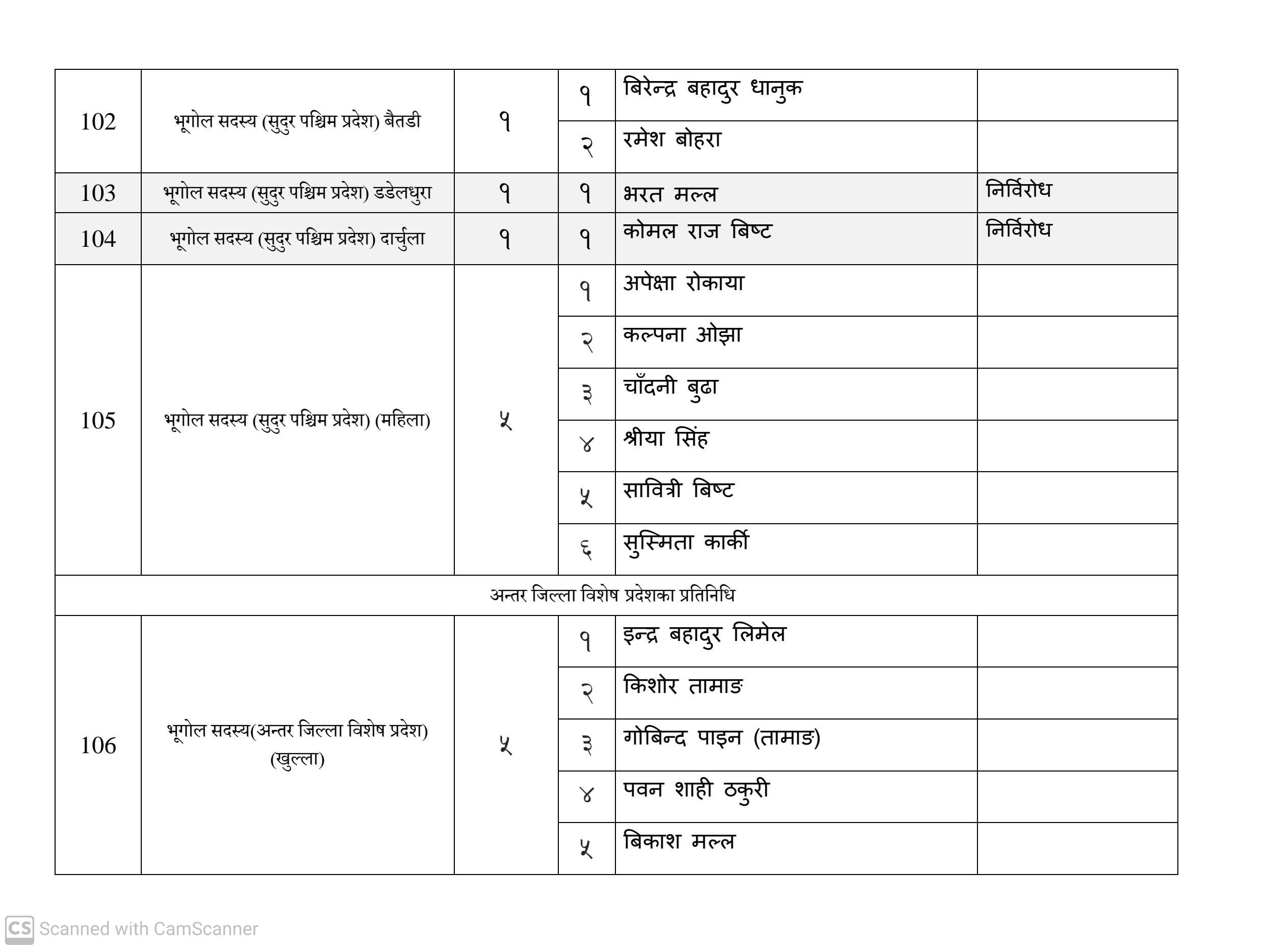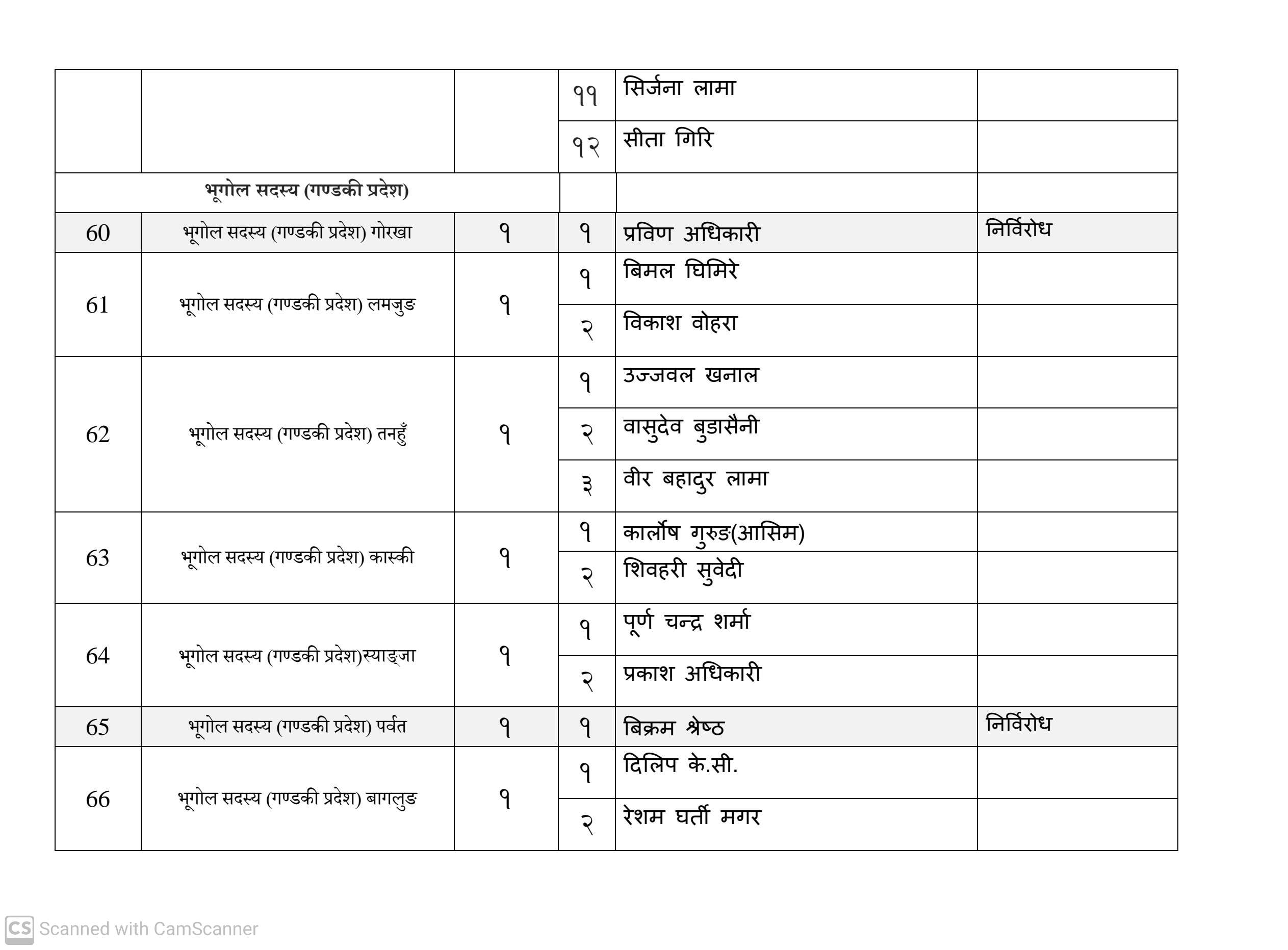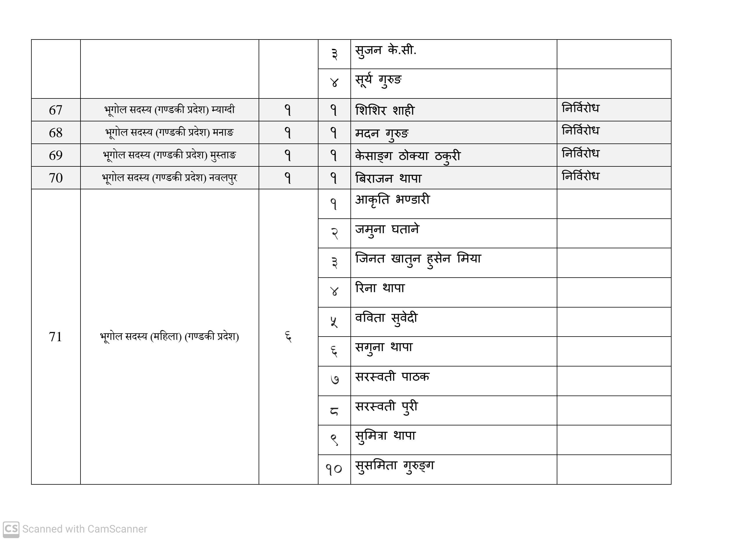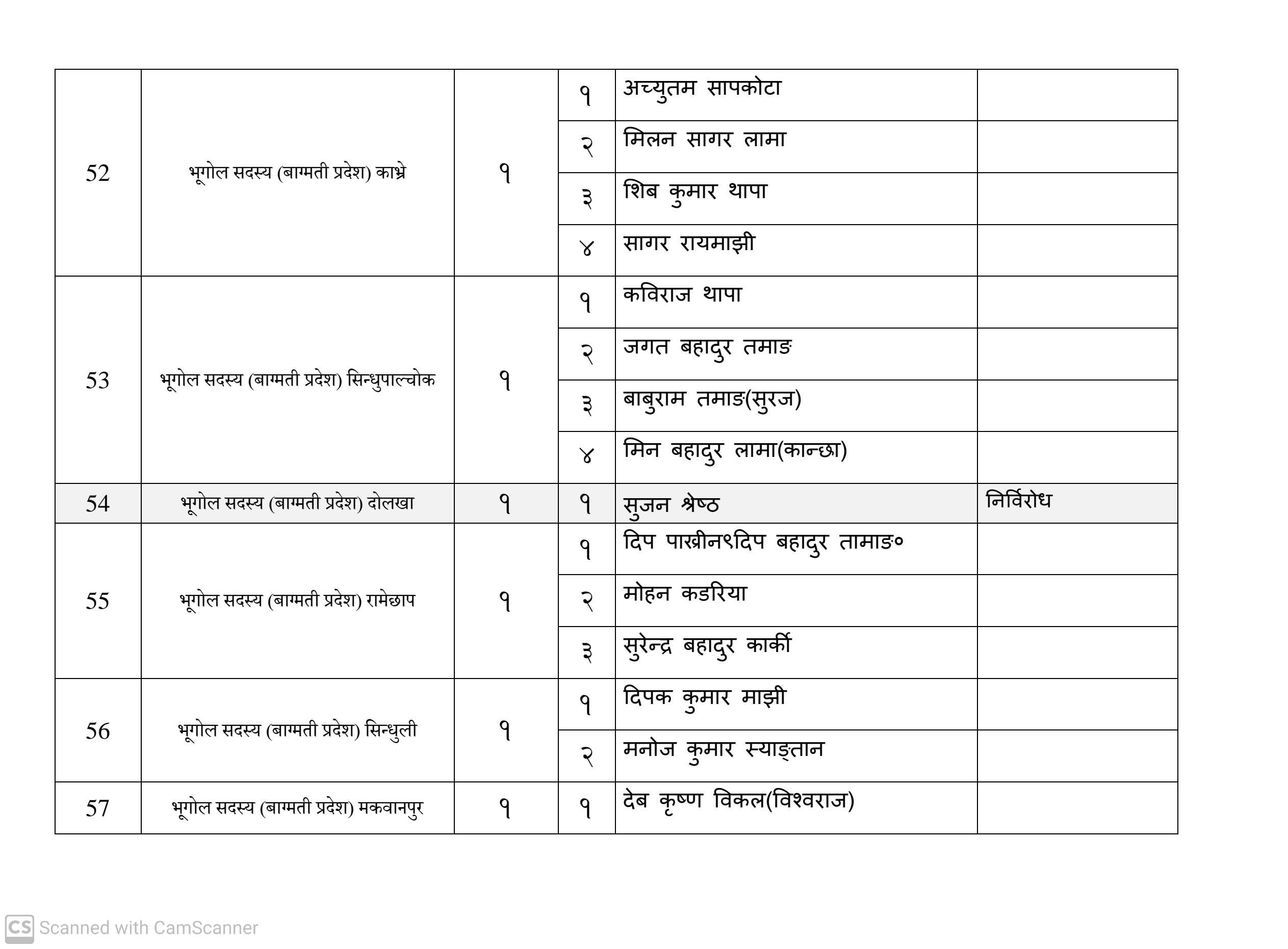 कुल १६३ जना सदस्य निर्वाचित हुनेमा हालसम्म ६४ जना सर्वसम्मत चयन भइसकेका छन्। तीमध्ये ५७ जना क्षितिज थेबे पक्षधर रहेका छन् भने सुमन पक्षधरबाट सर्वसम्मत भएका ४ जनामध्ये लुम्बिनी प्रदेशका केही प्रतिनिधि अझै तटस्थ (न्युट्रल) रहेको बताइएको छ।