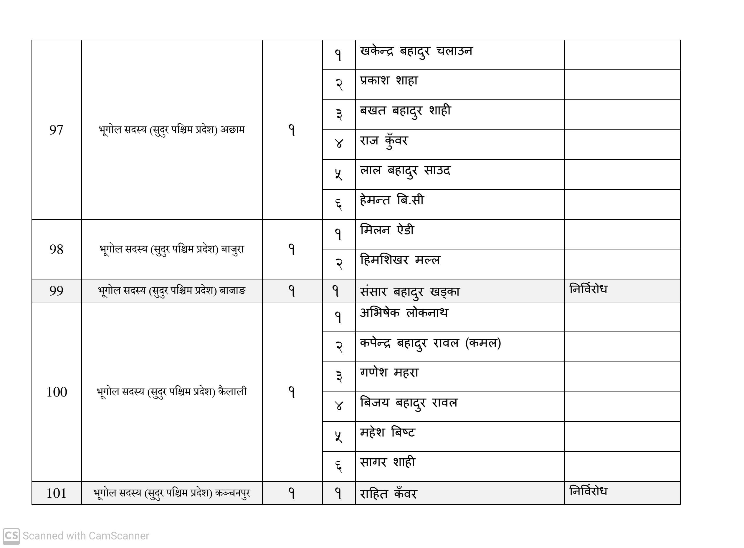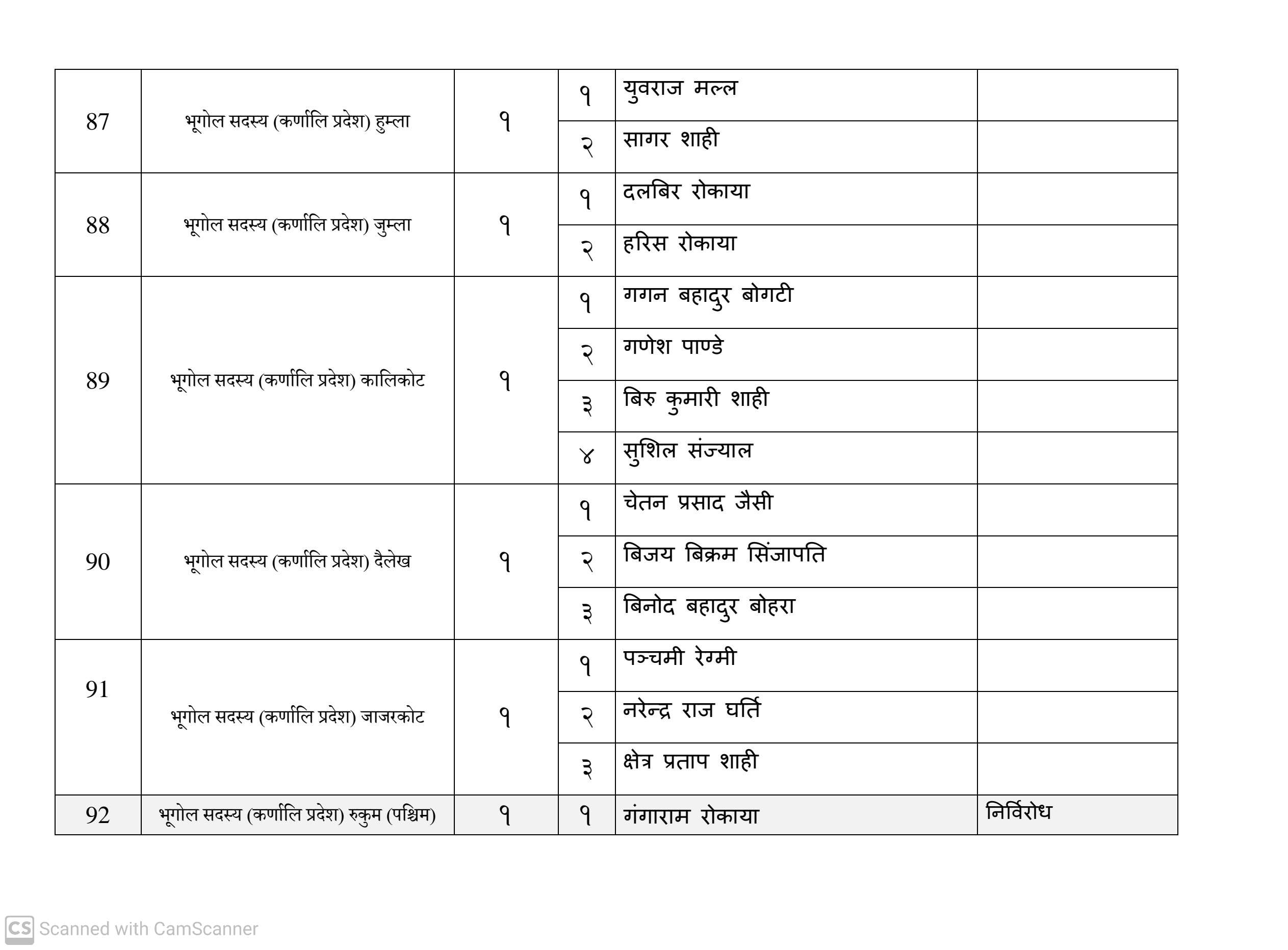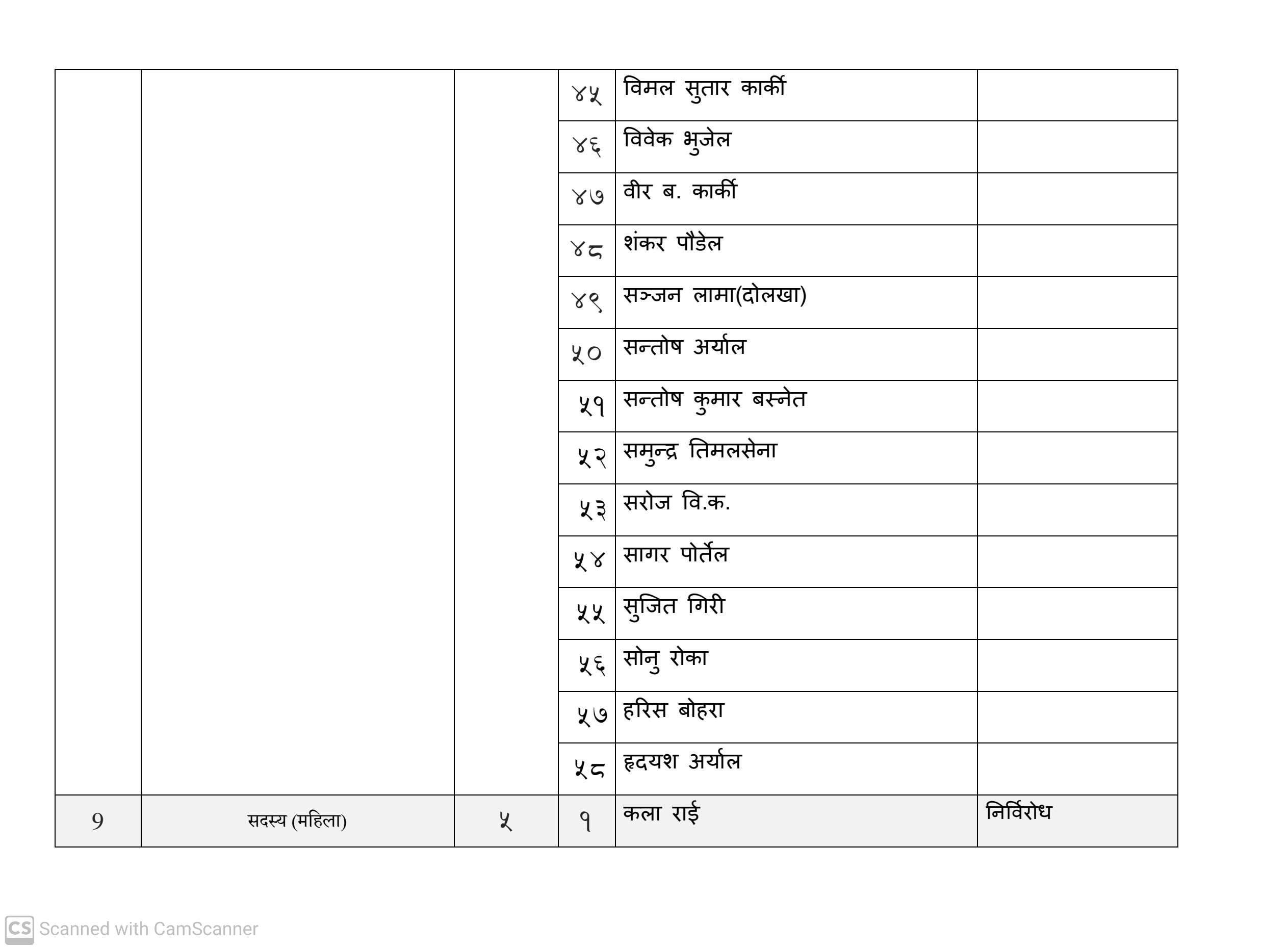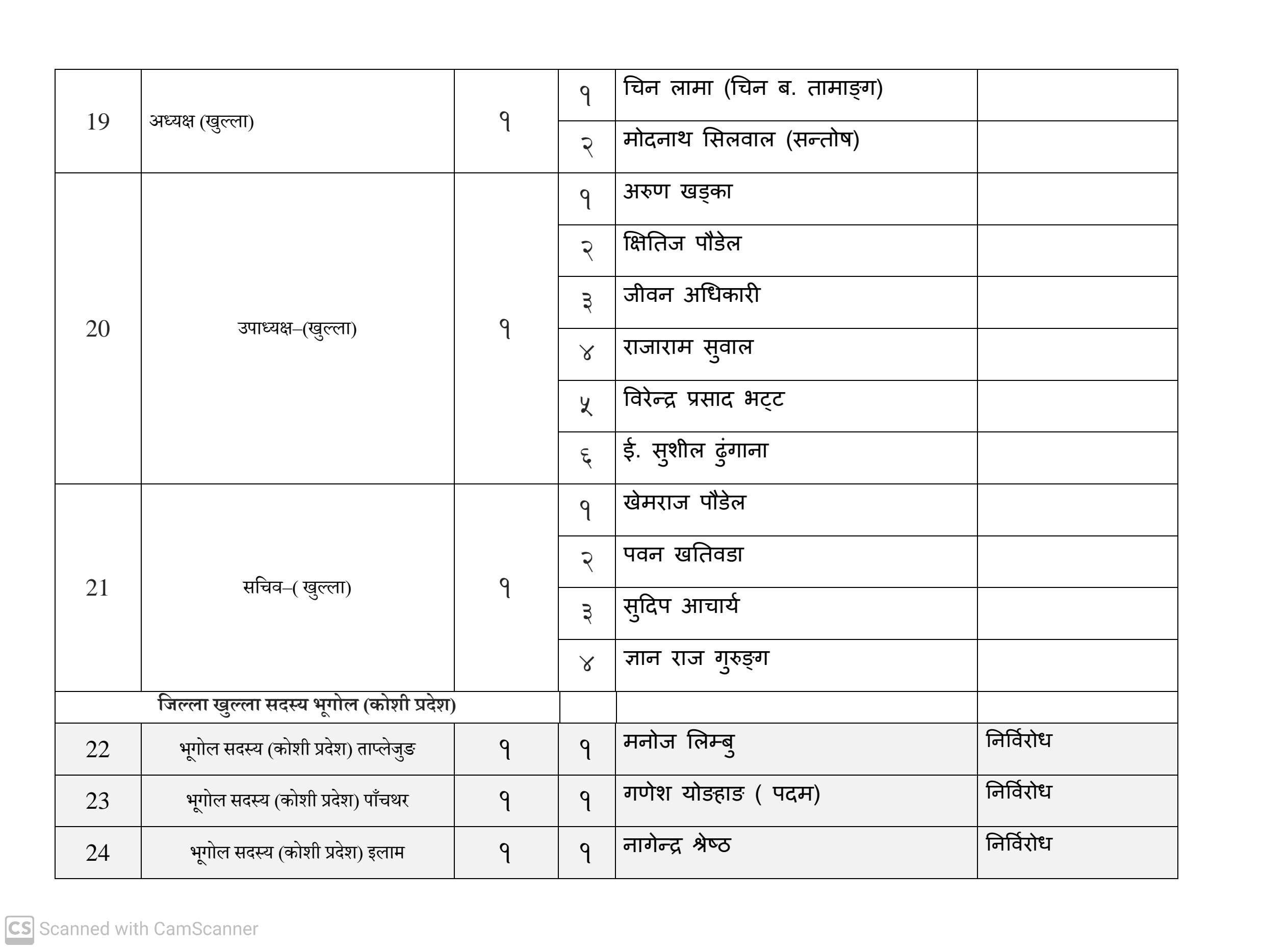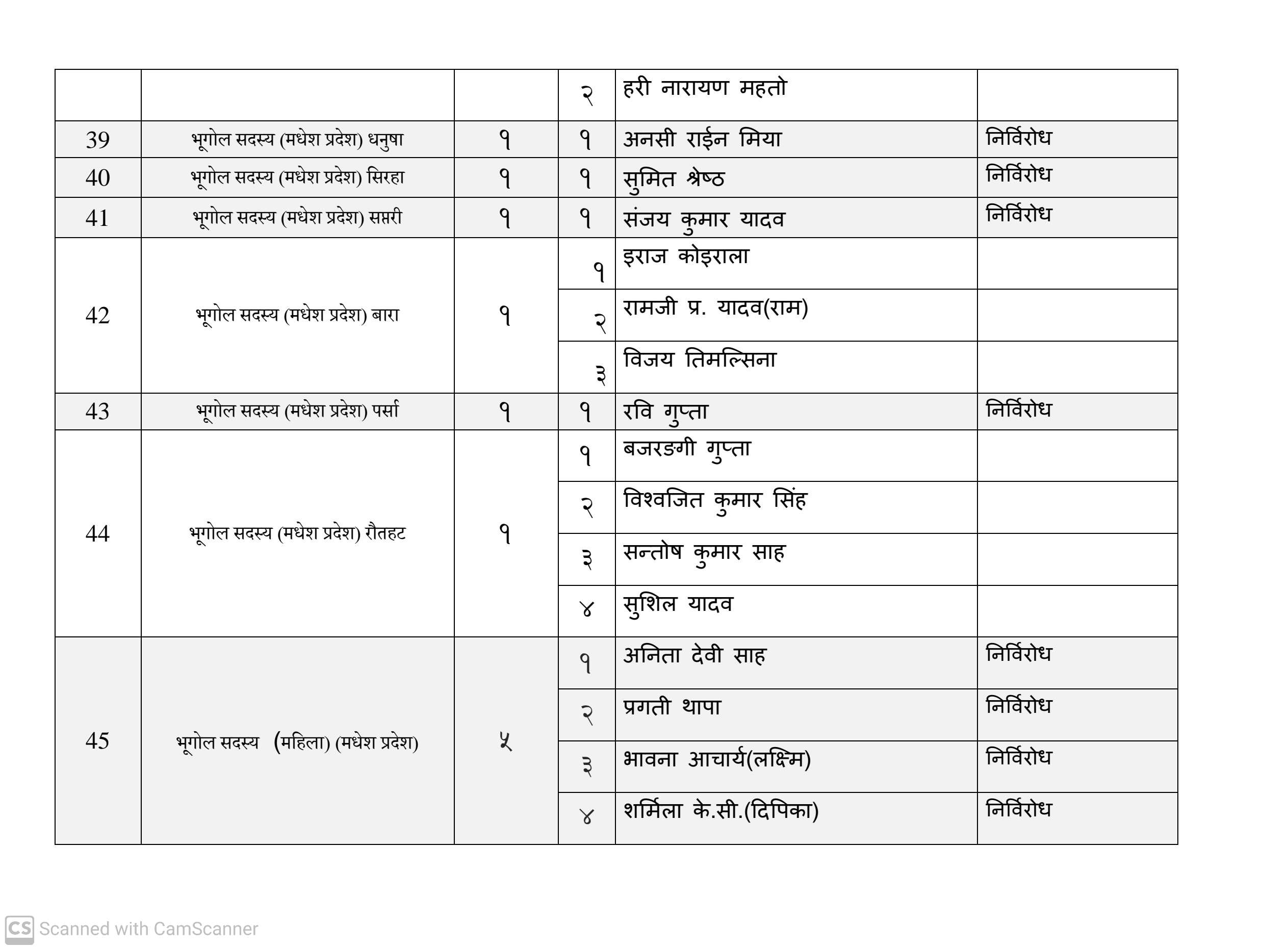कुल १६३ जना सदस्य निर्वाचित हुनेमा हालसम्म ६४ जना सर्वसम्मत चयन भइसकेका छन्। तीमध्ये ५७ जना क्षितिज थेबे पक्षधर रहेका छन् भने सुमन पक्षधरबाट सर्वसम्मत भएका ४ जनामध्ये लुम्बिनी प्रदेशका केही प्रतिनिधि अझै तटस्थ (न्युट्रल) रहेको बताइएको छ।