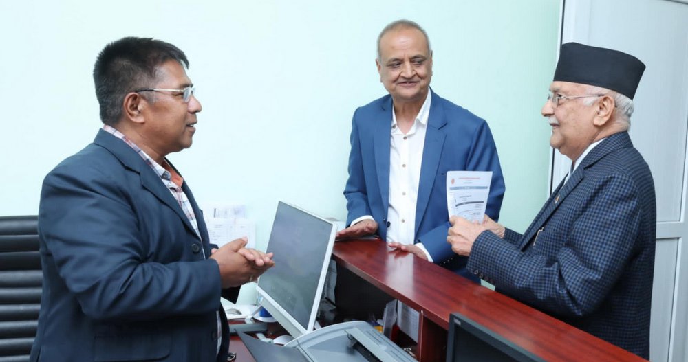 अध्यक्ष ओलीलाई केन्द्रीय कार्यलयका सचिव डा भीष्म अधिकारी र लेखा प्रमुख राजेन्द्र श्रेष्ठले रसिद बुझाउनुभएको थियोे ।