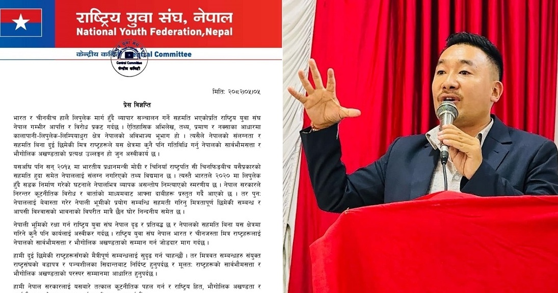 लिपुलेक सम्झौताप्रति राष्ट्रिय युवा संघ नेपालको कडा आपत्ति